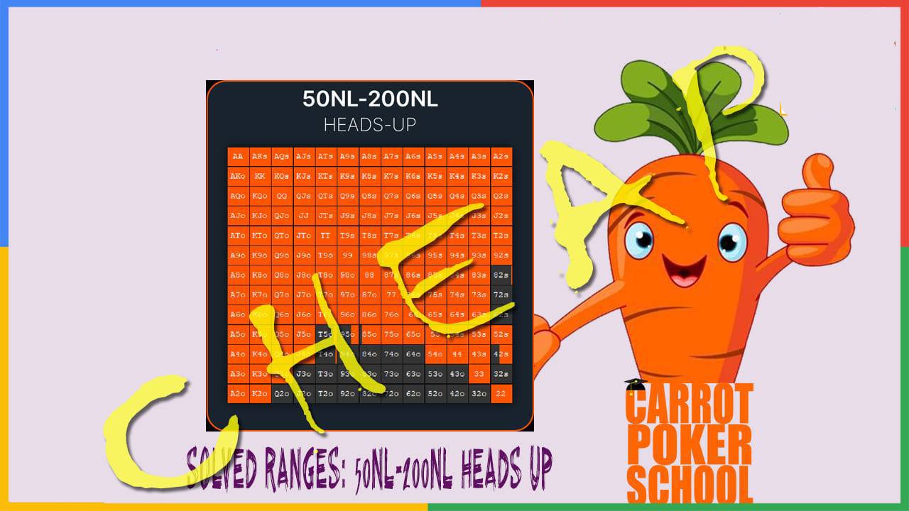 Master Heads Up pre-flop strategy with Carrot Corner Solved Ranges. Get rake-sensitive ranges for 50NL-200NL (3 opening sizes) with charts and solver files.